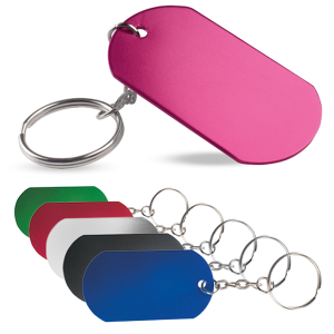 Llavero chapa con cuerpo de aluminio en variados y vivos colores. Especialmente diseñado para marcaje en láser.