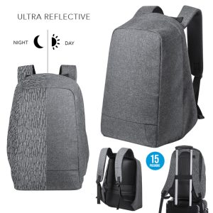 Mochila antirrobo reflectante de alta visibilidad, elaborada en resistente poliéster 600D de calidad premium y acabado en color gris. Fabricada empleando filamentos con gran capacidad para reflejar intensamente la ...