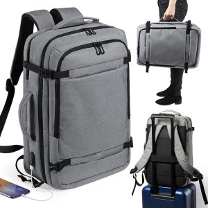 Mochila portadocumentos en resistente poliéster 600D de acabado denim. En diseño urbano, con bolsillo antirrobo, incluye conexión USB para carga de dispositivos móviles (cable incluido, batería auxiliar no incluida) ...