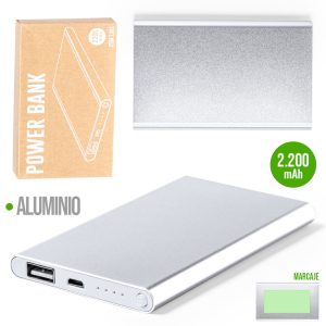 Batería auxiliar externa de 2.200 mAh, de diseño plano y fabricada en aluminio. Con salida USB y entrada Micro USB. Indicadores LED de estado de carga y cable de ...