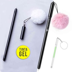 Llamativo bolígrafo pompón con capucha y tinta gel. Cuerpo en color negro de acabado frosted y disponible con pompón en color blanco o rosa. De cartucho jumbo y en ...